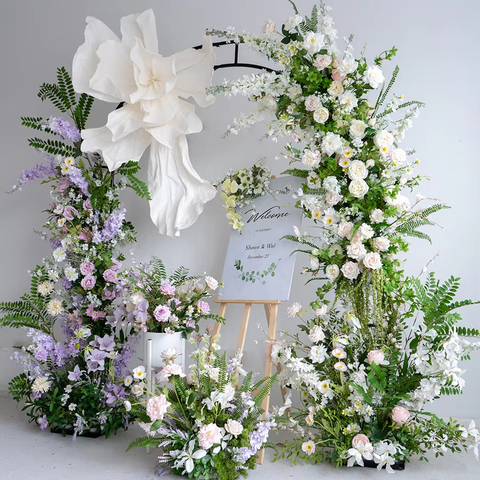 قوس زفاف زهور صناعية مخصصة لتزيين الزفاف