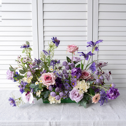 Tùy chỉnh đám cưới Dải lối đi màu trắng tím Nhân Tạo Hoa Hàng đám cưới Bảng hoa RUNNER cho Bảng trang trí